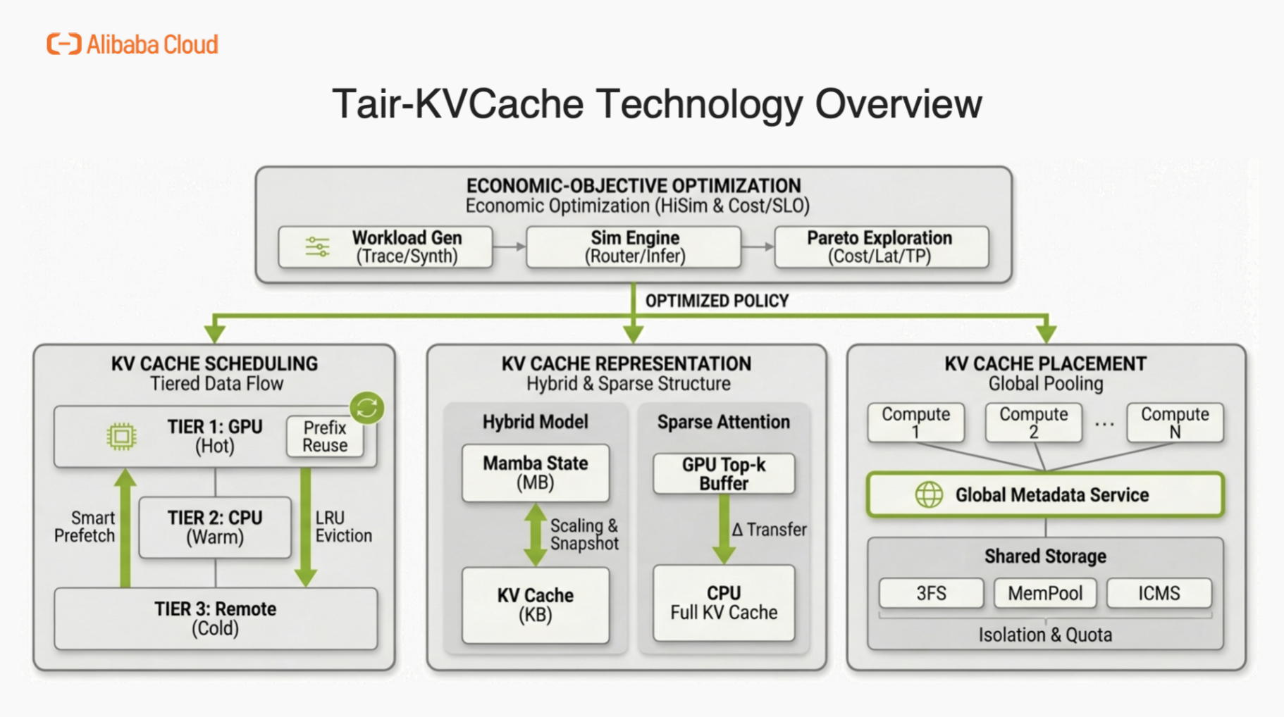 阿里云数据库 Tair 给出了自己的回答:从分层调度、全局池化、混合模型适配,到与 SGLang 社区深度共建、联合 NVIDIA Dynamo AIConfigurator 团队开发高保真仿真器,再到面向未来硬件的 G3.5 定制存储探索——一套覆盖全链路的系统性解法,正在重新定义 AI 时代的存储基础设施。