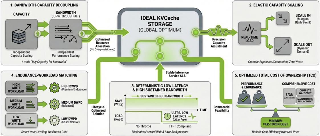 与传统通用存储方案相比,G3.5 方案有四个核心差异:第一定位上专为 KV Cache 优化,而非通用数据存储;第二接入方式采用网络附加+智能预取,而非简单的本地或网络挂载;成本效率上实现容量与带宽独立扩展,按需付费,避免资源浪费。