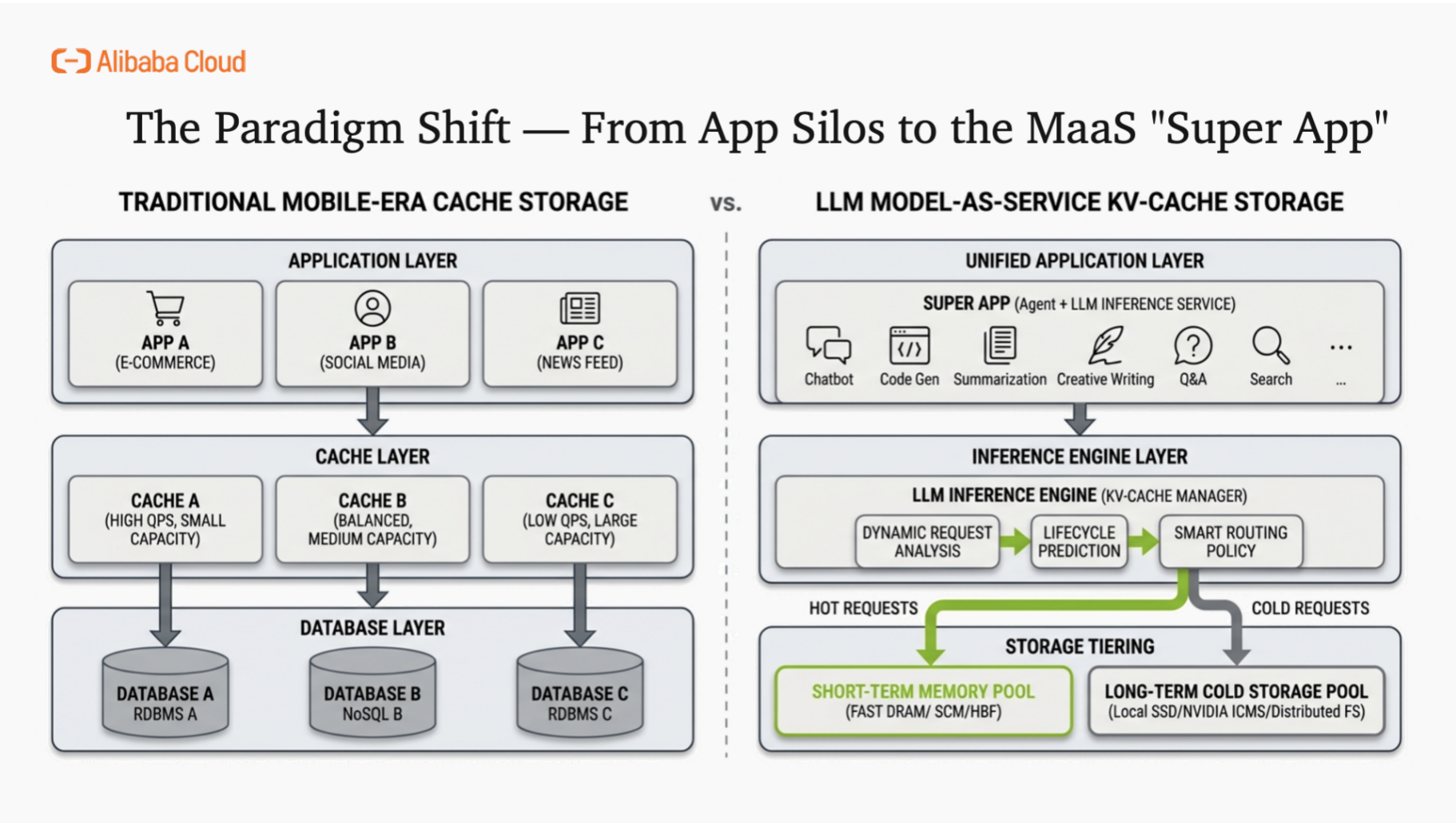 当前,AI 的应用正经历从“单一模型交互”向“自主智能体(Agent)集群协作”的关键范式转移。随着 OpenClaw 等新一代框架的爆发,应用侧对长上下文、多轮记忆及复杂任务规划的需求呈指数级增长,基础设施面临前所未有的挑战。在此背景下,阿里云资深技术总监张为在GTC 2026 Session 中介绍《基于全局 KV Cache 存储系统的高效 LLM 推理加速方案》(点击查看视频回放、点击下载PDF),这一分享不仅引发了业界的广泛讨论与共鸣,更标志着存储层在 AI 推理链路中的战略地位从“辅助支撑”向“核心驱动”转变,确立了存算协同作为突破算力瓶颈的关键路径。本文将以此次分享为核心线索,从 KVCache 的技术原理、架构演进、工程挑战到未来硬件趋势,为大家带来一次系统性的深度复盘与解析,旨在为构建高效、经济的 AI 推理基础设施提供实践参考。